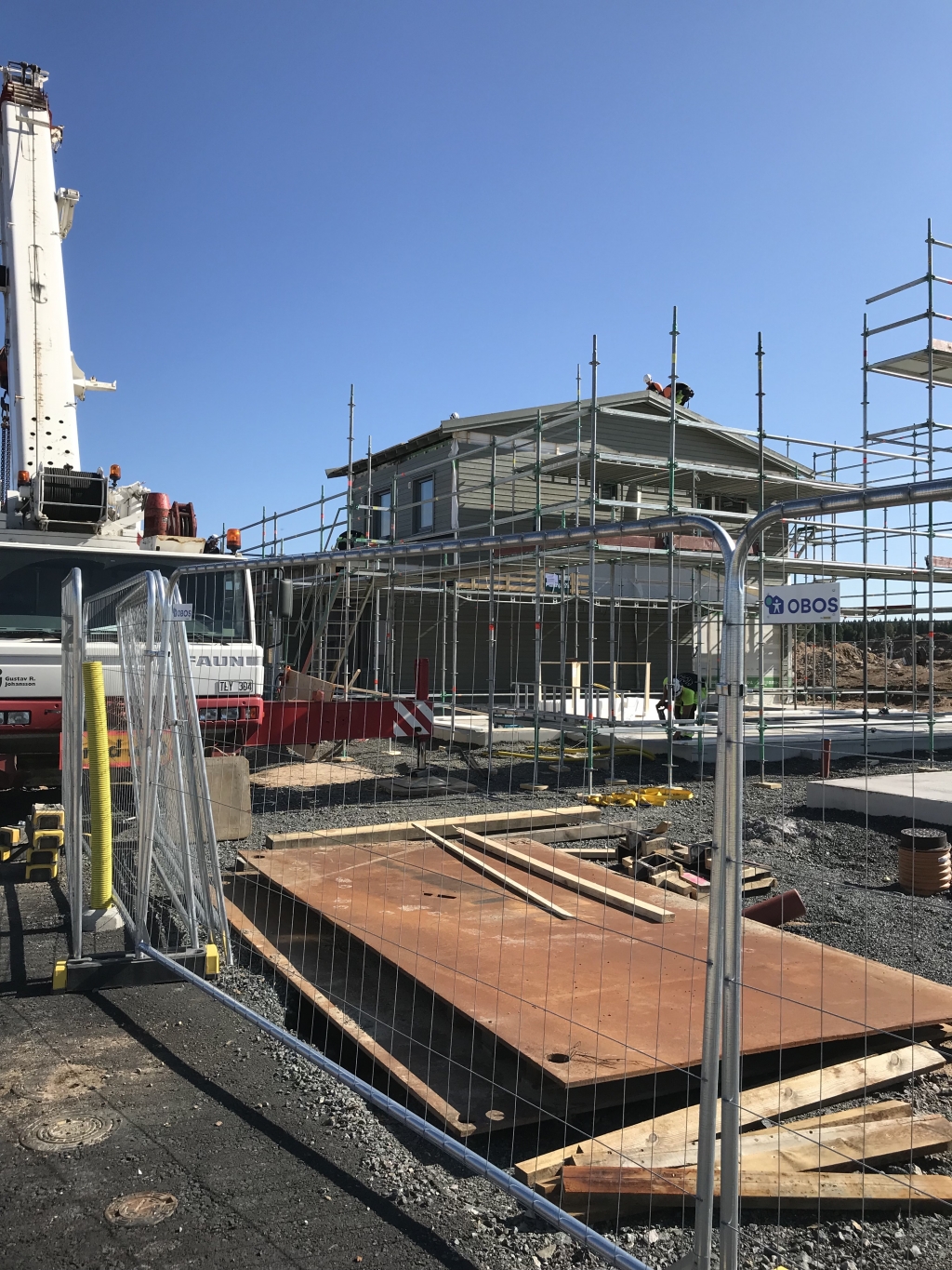 Bygget är igång sedan två veckor tillbaka och idag levererades första huset. Nästa leverans är imorgon och vi hoppas att vädret är lika bra imorgon.
