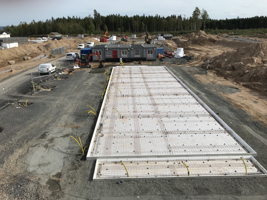 Arbetena på byggarbetsplatsen fortsätter, här nedan syns en bild från grundläggningen på 5 st radhus.